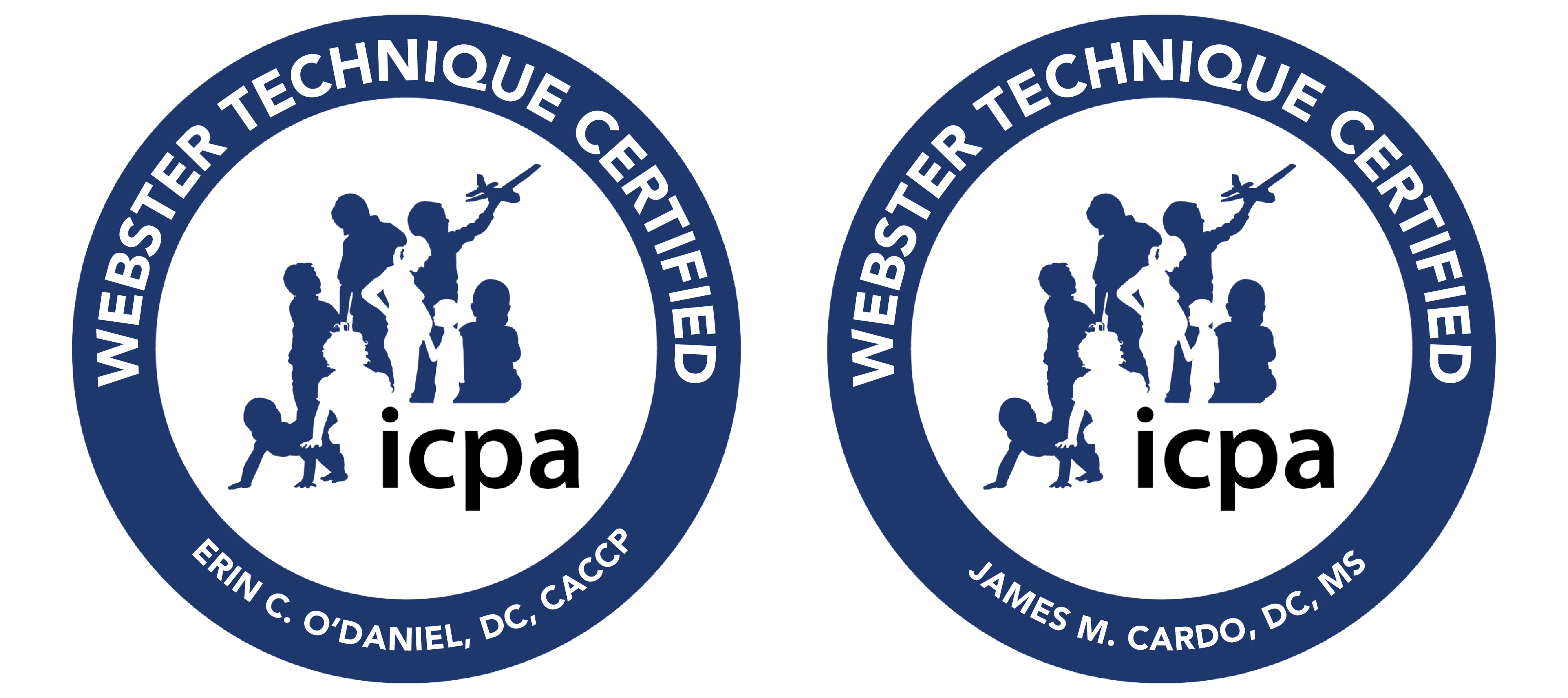 Both Erin O'Daniel, DC, CACCP and James M. Cardo, DC, MS are Webster Technique Certified through ICPA4Kids.